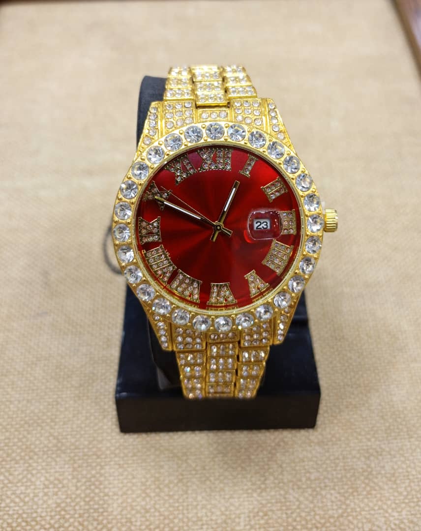 ساعت زنانه فول نگین طرح رولکس طلایی