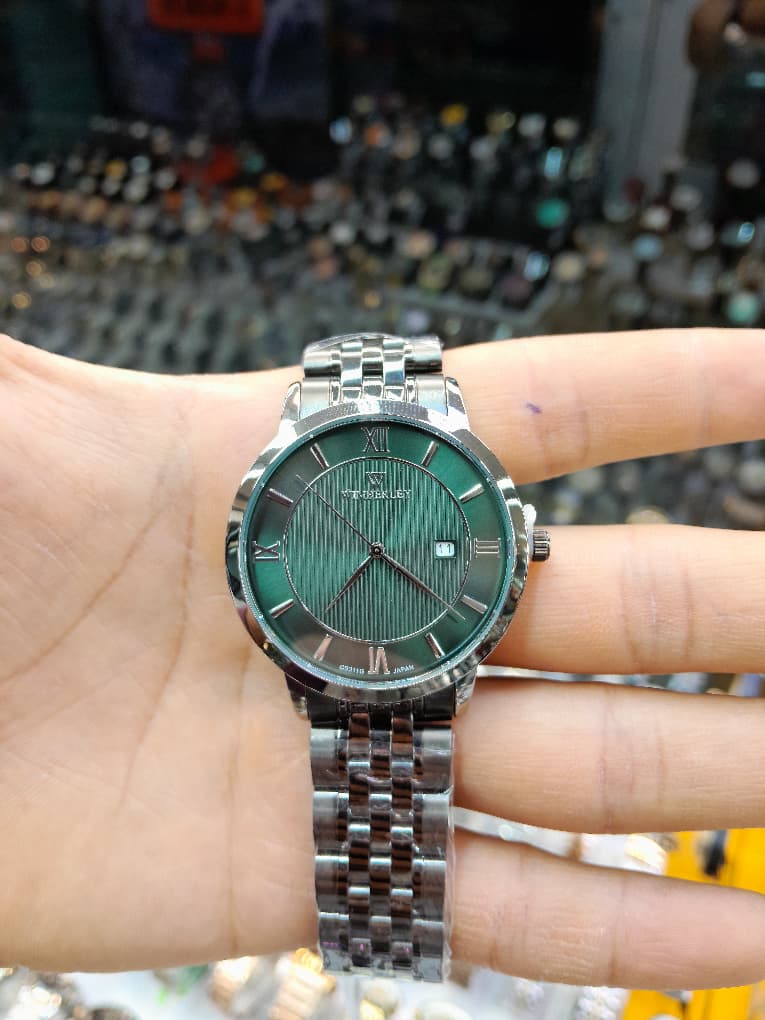 ساعت مردانه ویمبرلی تک موتور ژاپن قاب وبنداستیل صفحه سبز