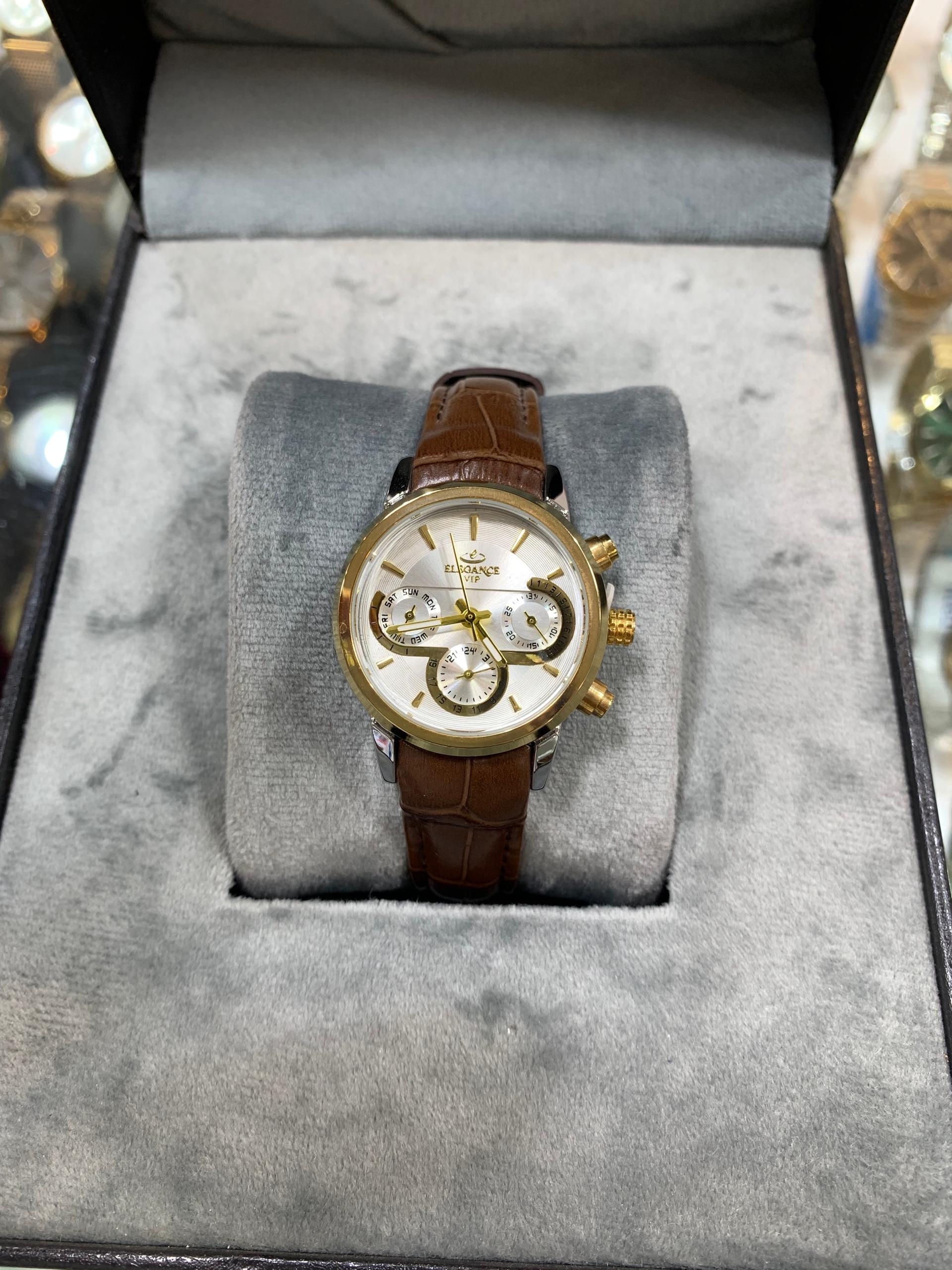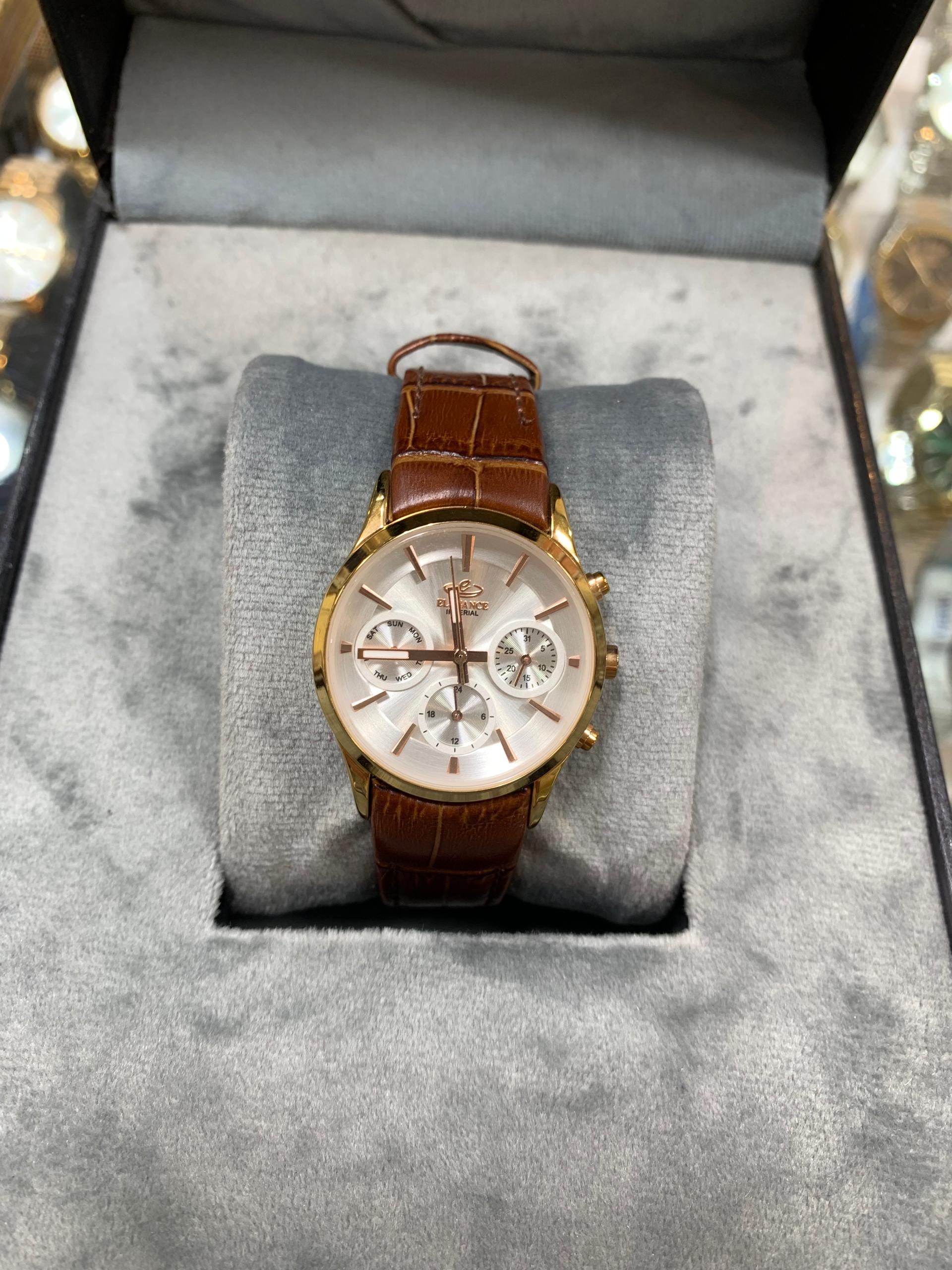 ساعت زنانه الگانس فول دیت ژاپن بندچرم قهوه ای