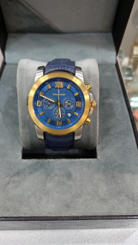 ساعت زنانه رومانسون کرنوگراف دورنگین ژاپن بندچرمی سورمه ای