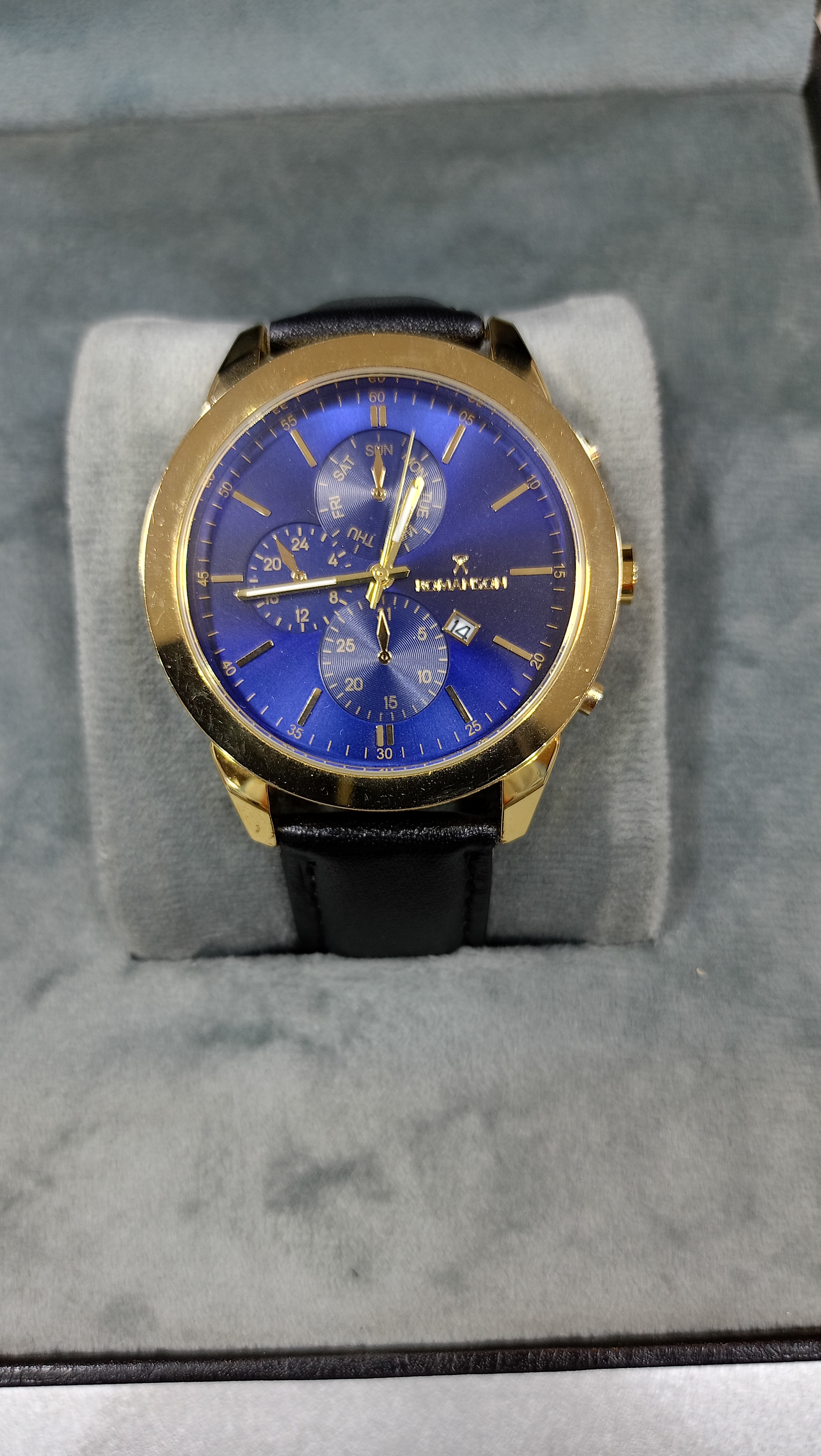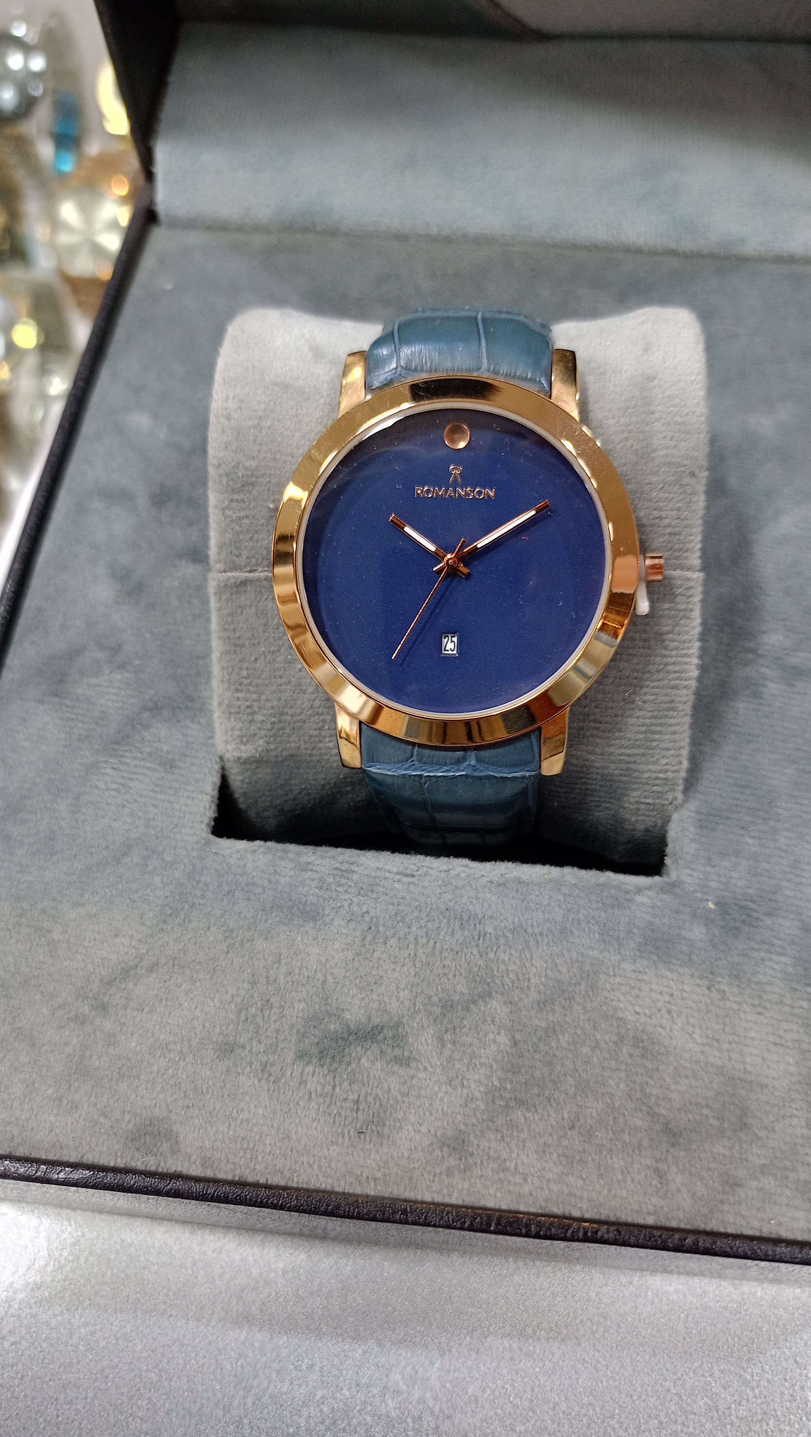 ساعت مردانه رومانسون تقویم روزشمار بندچرمی ابی