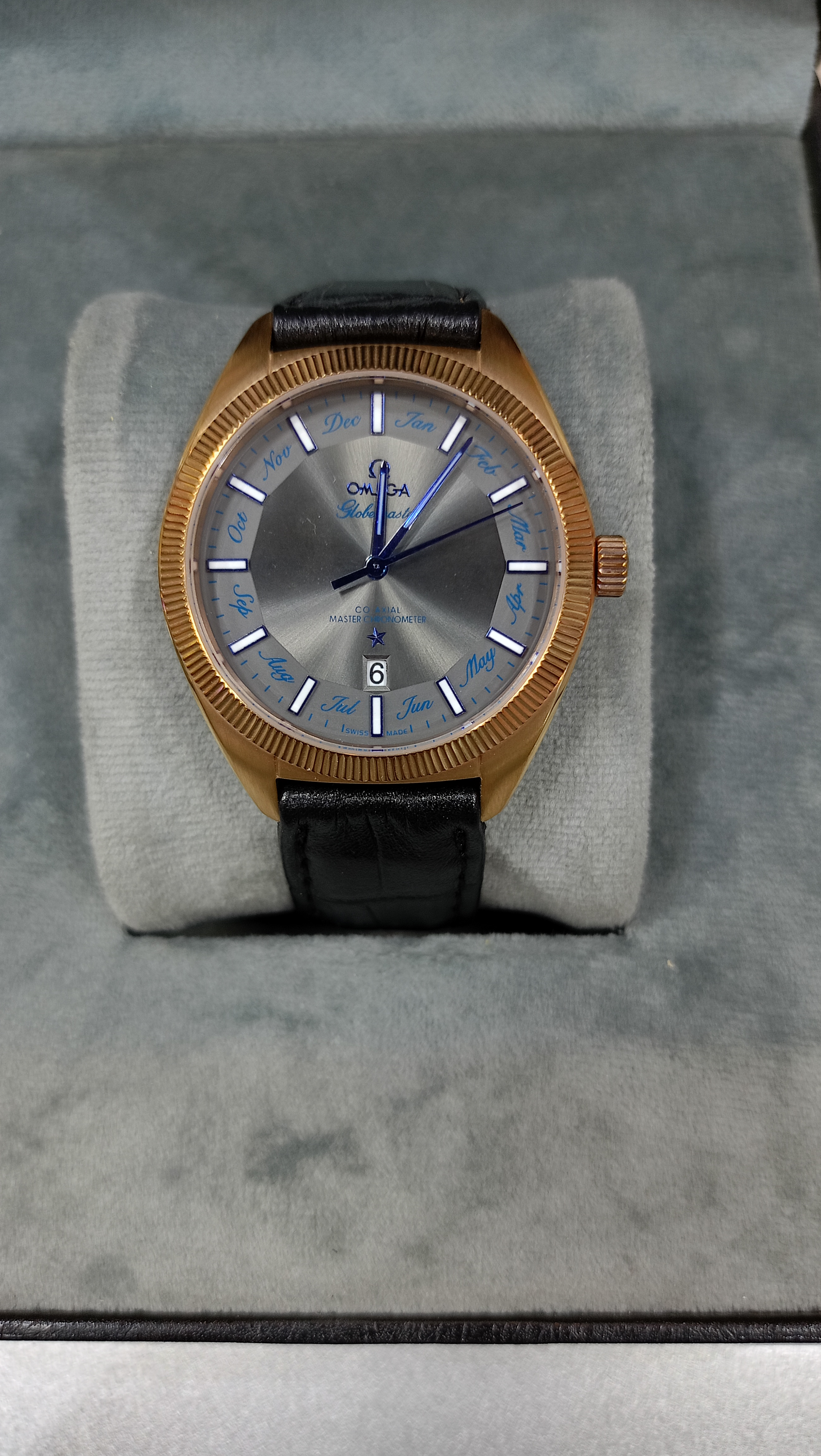 ساعت امگا مردانه بند چرم مشکی تقویم روزشمار