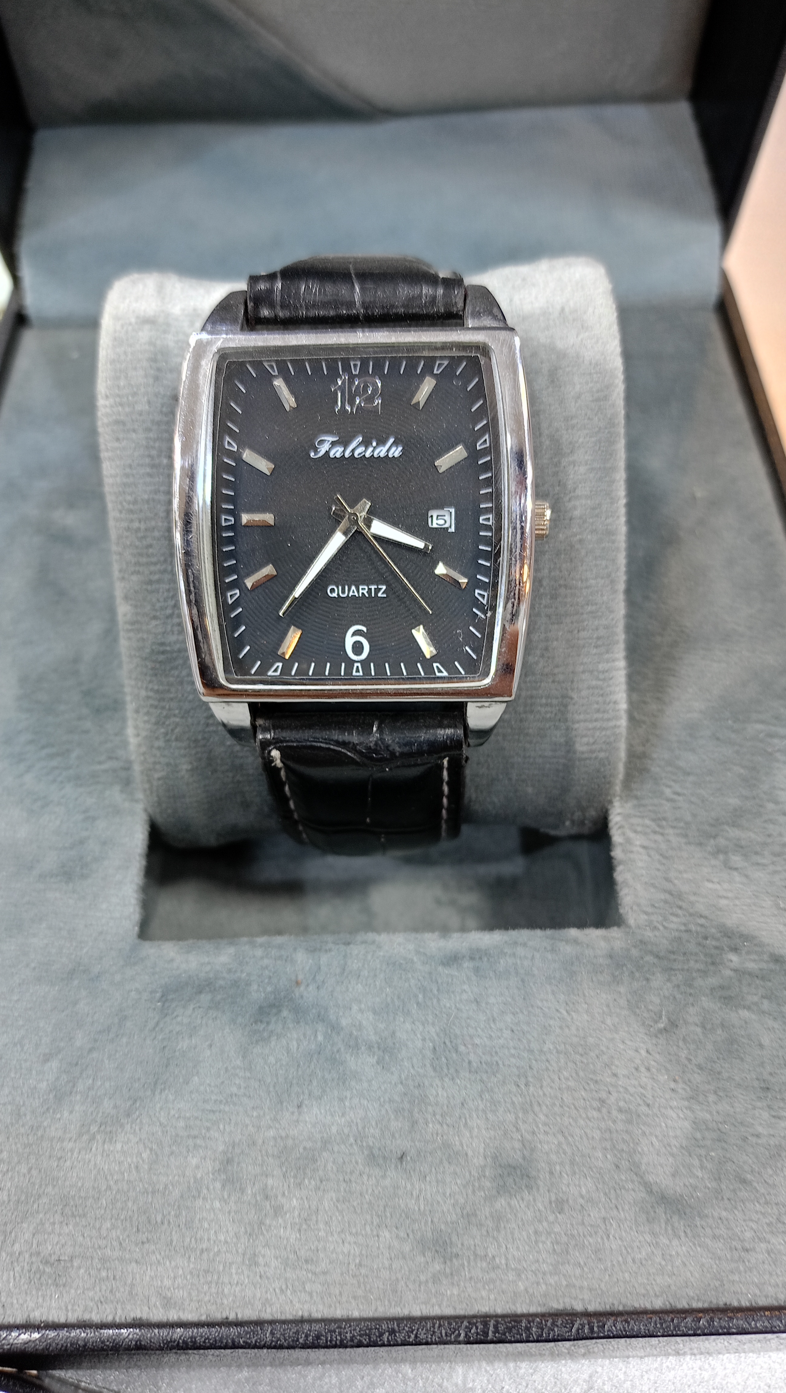 ساعت مردانه faleida بند چرم تک موتورتقویم روزشمار