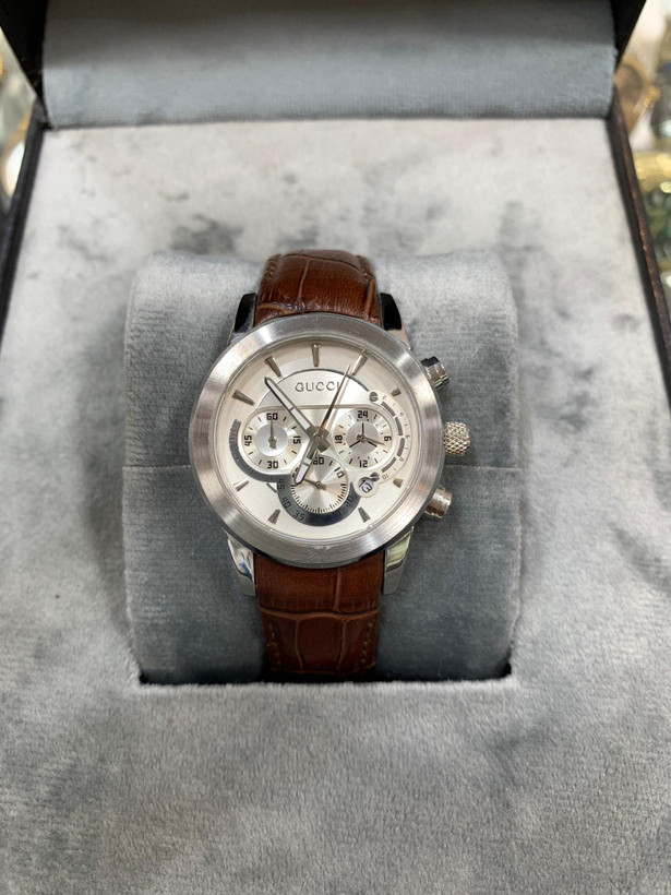 ساعت زنانه بند چرمی گوچی تقویم روزشمار کیفیت عالی مقاوم دربرابر اب تنوع وکیفیت راازمابخواهید گالری ساعت معین