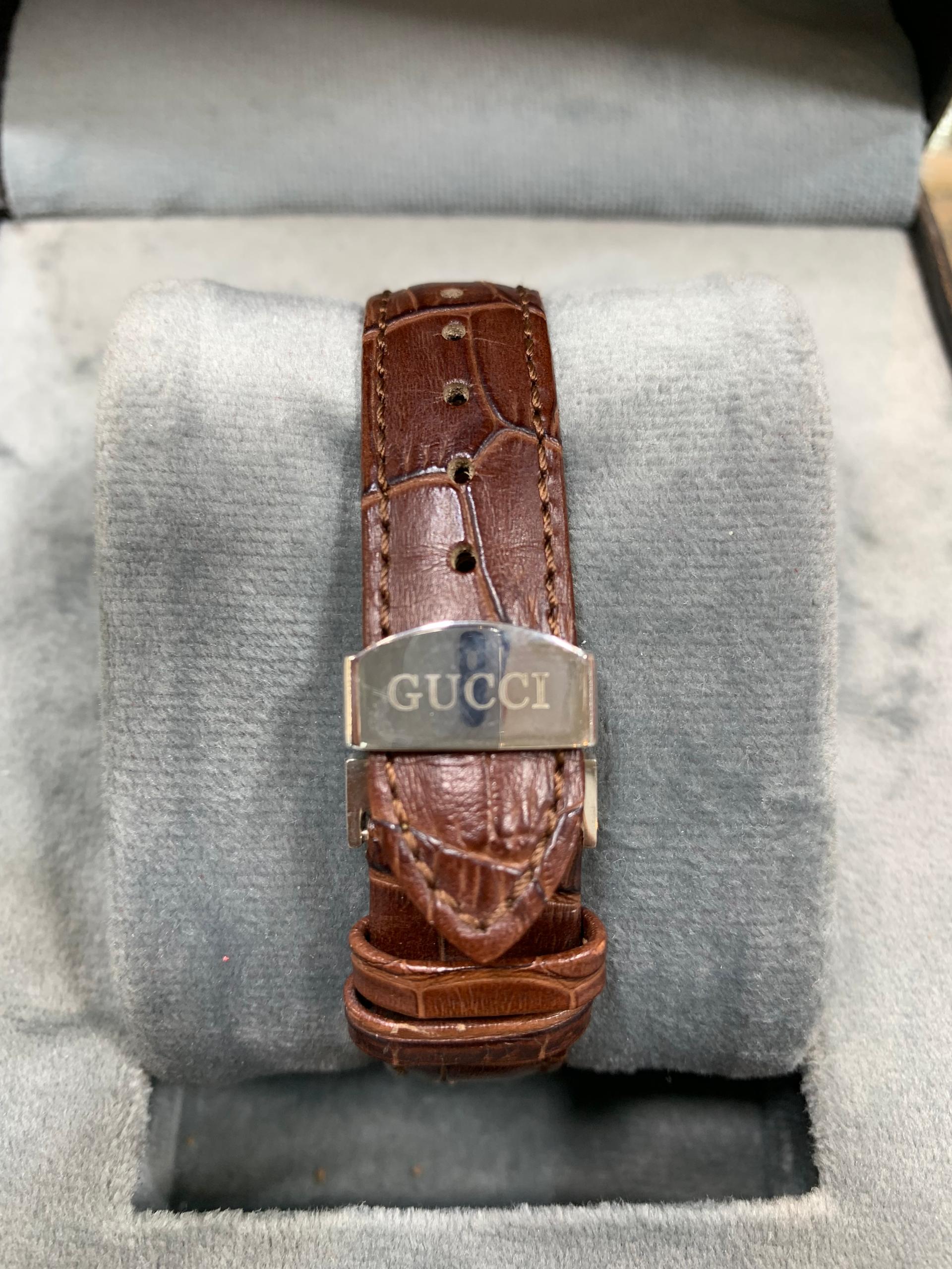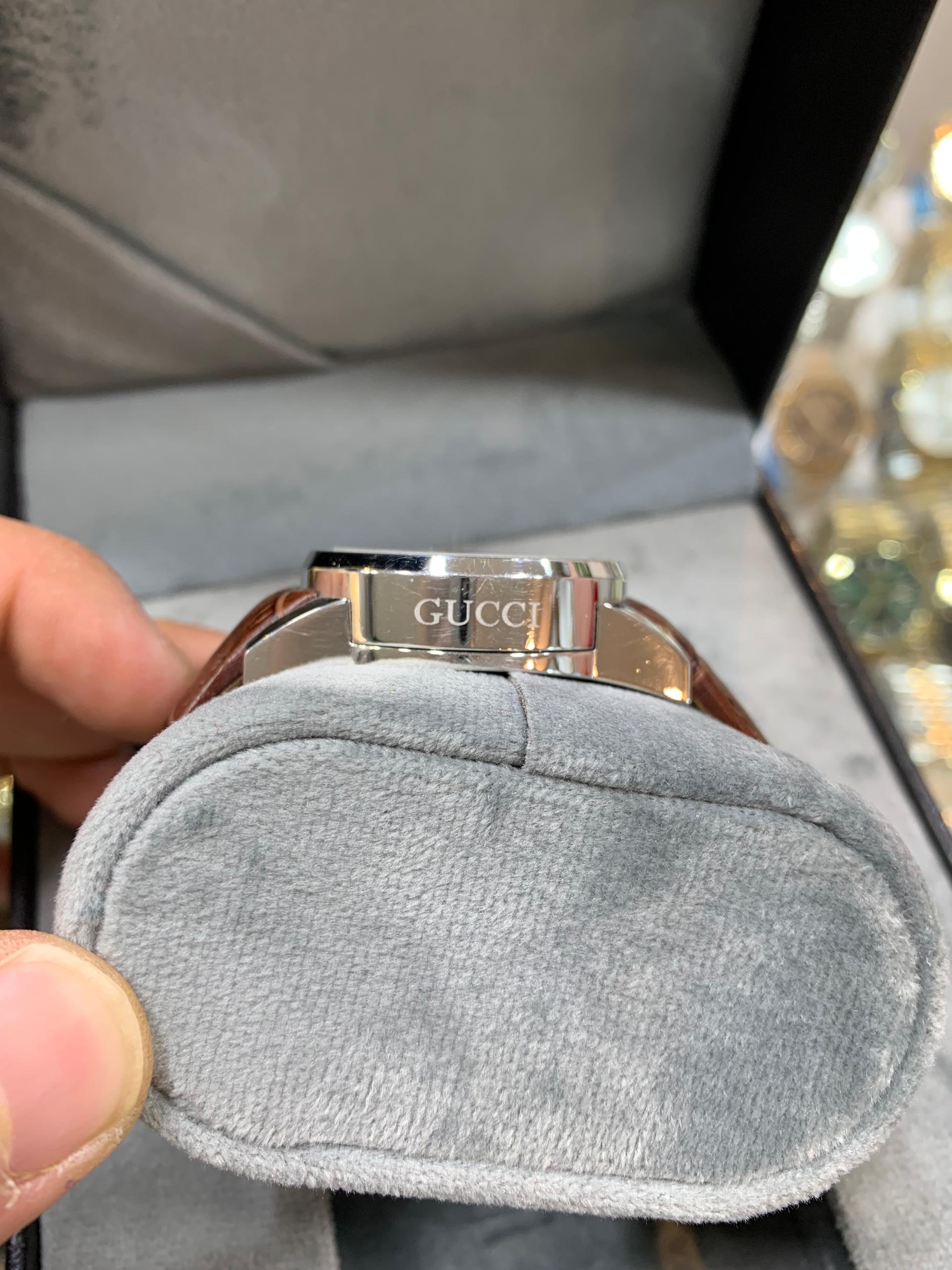 ساعت زنانه بند چرمی گوچی تقویم روزشمار کیفیت عالی مقاوم دربرابر اب تنوع وکیفیت راازمابخواهید گالری ساعت معین