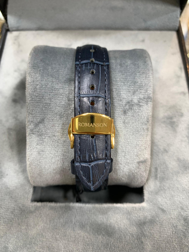 ساعت زنانه رومانسون کرنوگراف بند چرمی سورمه ای قاب طلایی کیفیت عالی مقاوم دراب دارای گارانتی تنوع وکیفیت راازمابخواهید