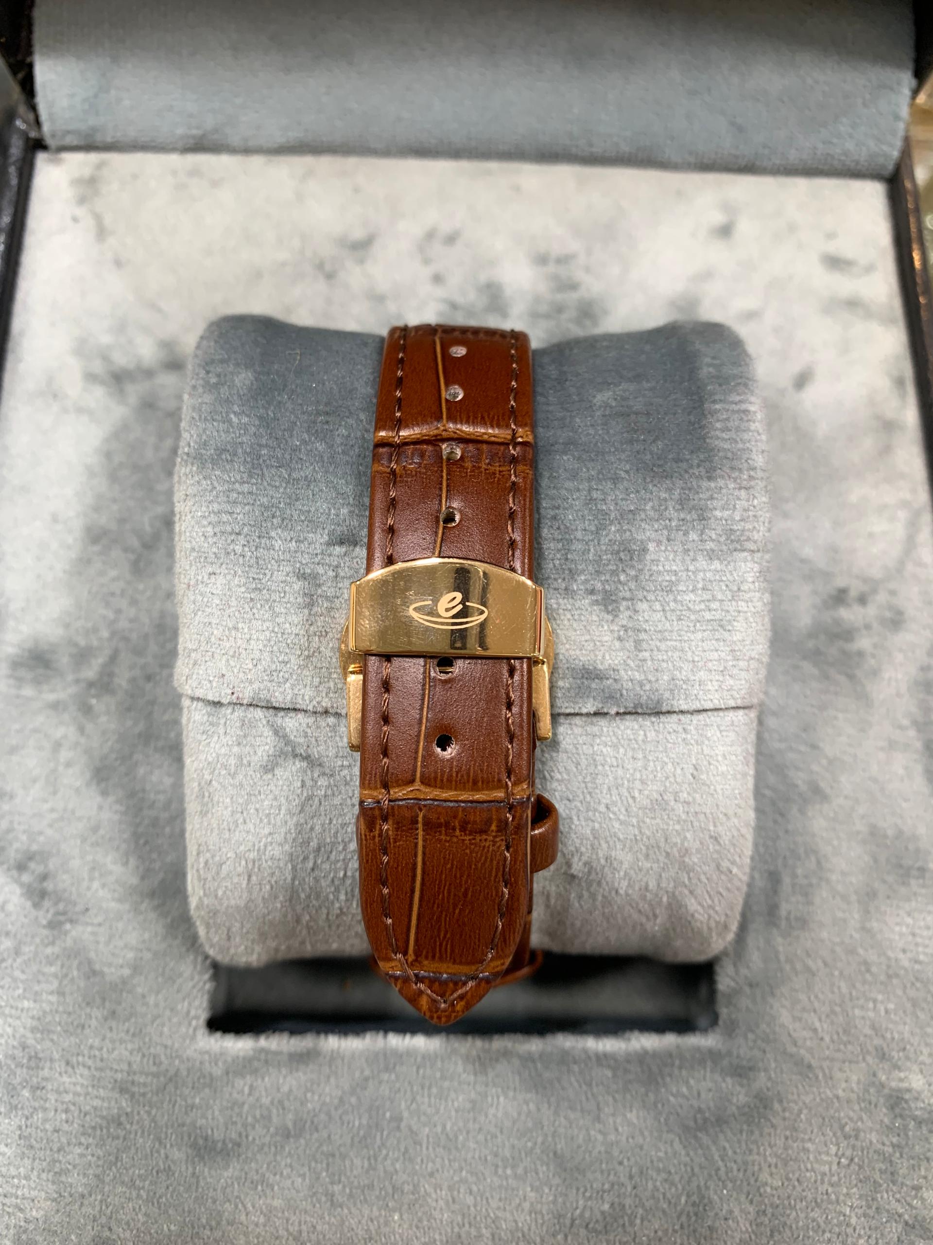 ساعت زنانه الگانس فول دیت ژاپن بندچرم قهوه ای